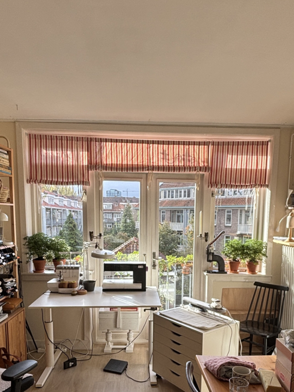 Na in verschillende ateliers buitenshuis gewerkt te hebben, heb ik weer voor rust en eenvoud gekozen en werk ik vanuit huis.